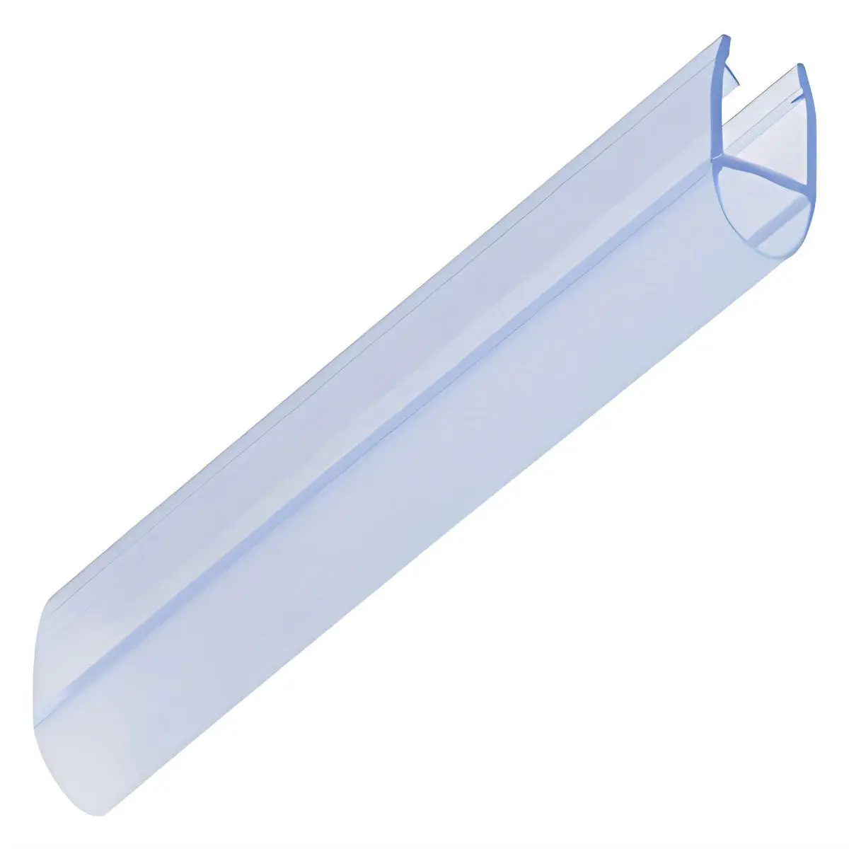 1000m length translucent glass compression seal for frameless doors. Sold in single units with soft bubble seal for interfaces between the bottom edge of the glass door and shower tray / top of the bath (horizontally) or between the wall and the edge of the glass door (vertically)