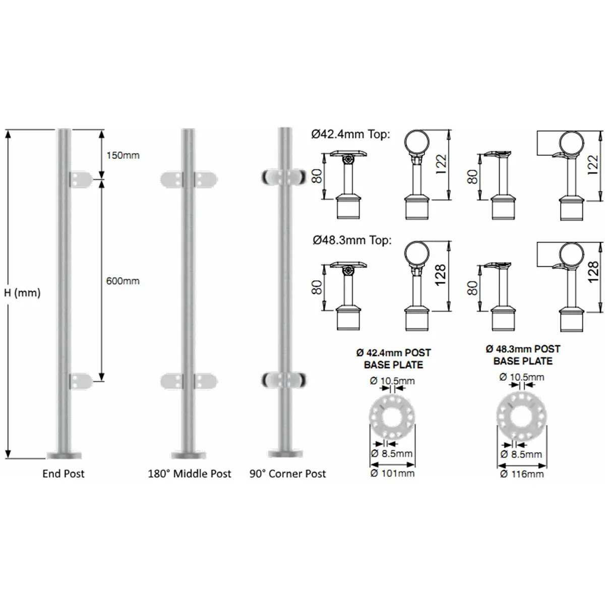 - Ø48.3mm Posts = 972mm