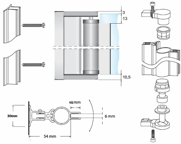 Glass-to-Wall Hinge for Bath Screen Specifications