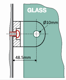 - Glass Considerations: Drill holes in glass is optional. Ø10mm hole is required when using the Security Pin