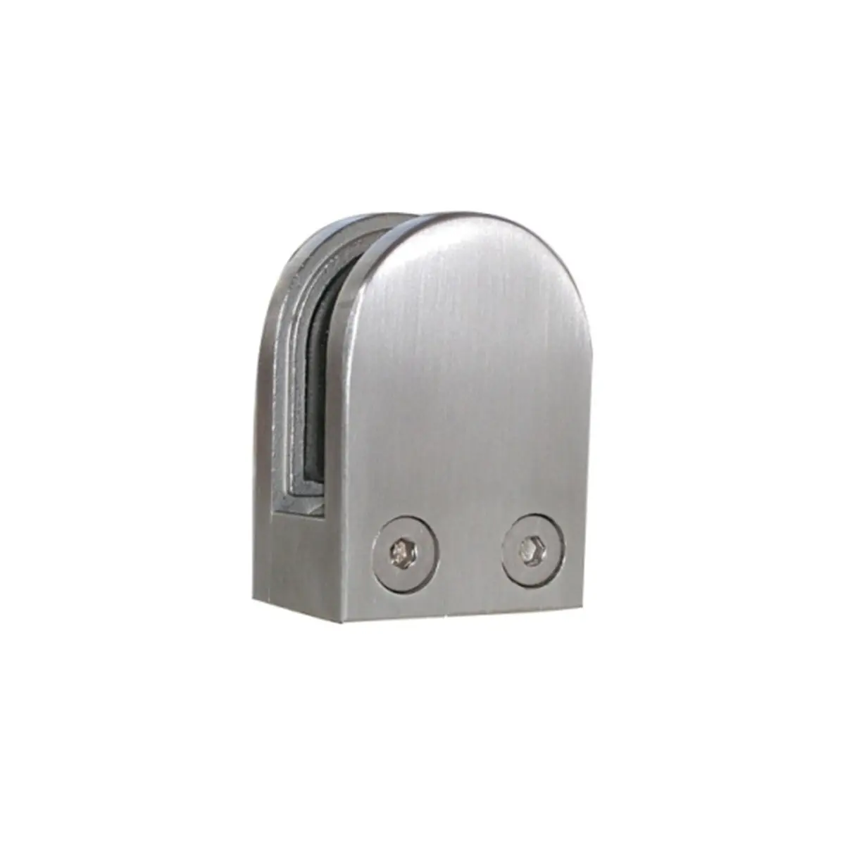 Stainless Steel flat back D shaped glass clamp, suitable for FLAT post/aperture interfacing. Clamps complete with rubber gaskets, reinforced screws, and security pins.
