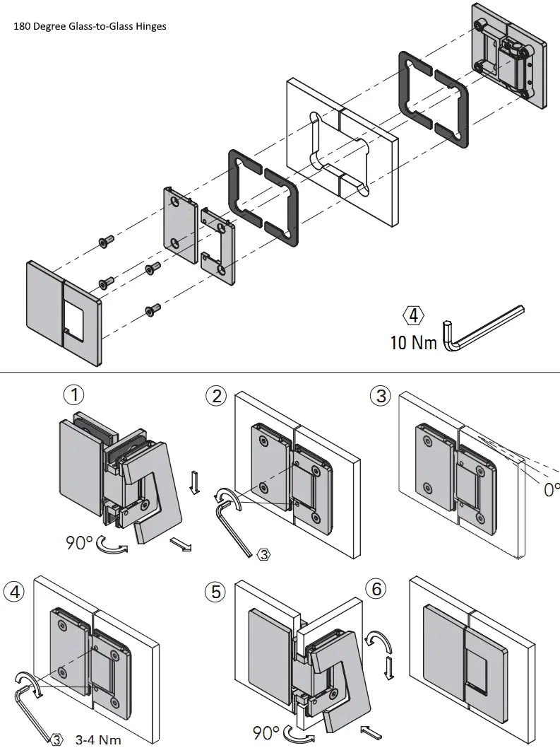 Adjustable Glass-to-Glass Door Hinge (Single)
