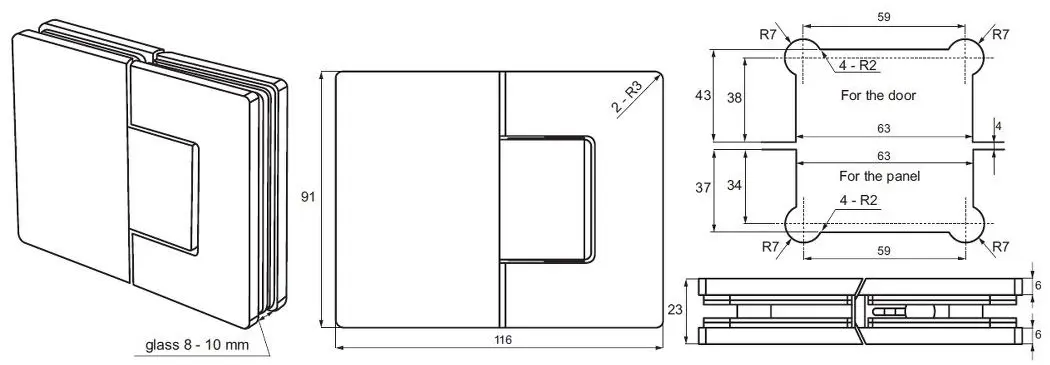 - Opening: 180° Inward and outward opening with 15° self-centering return function