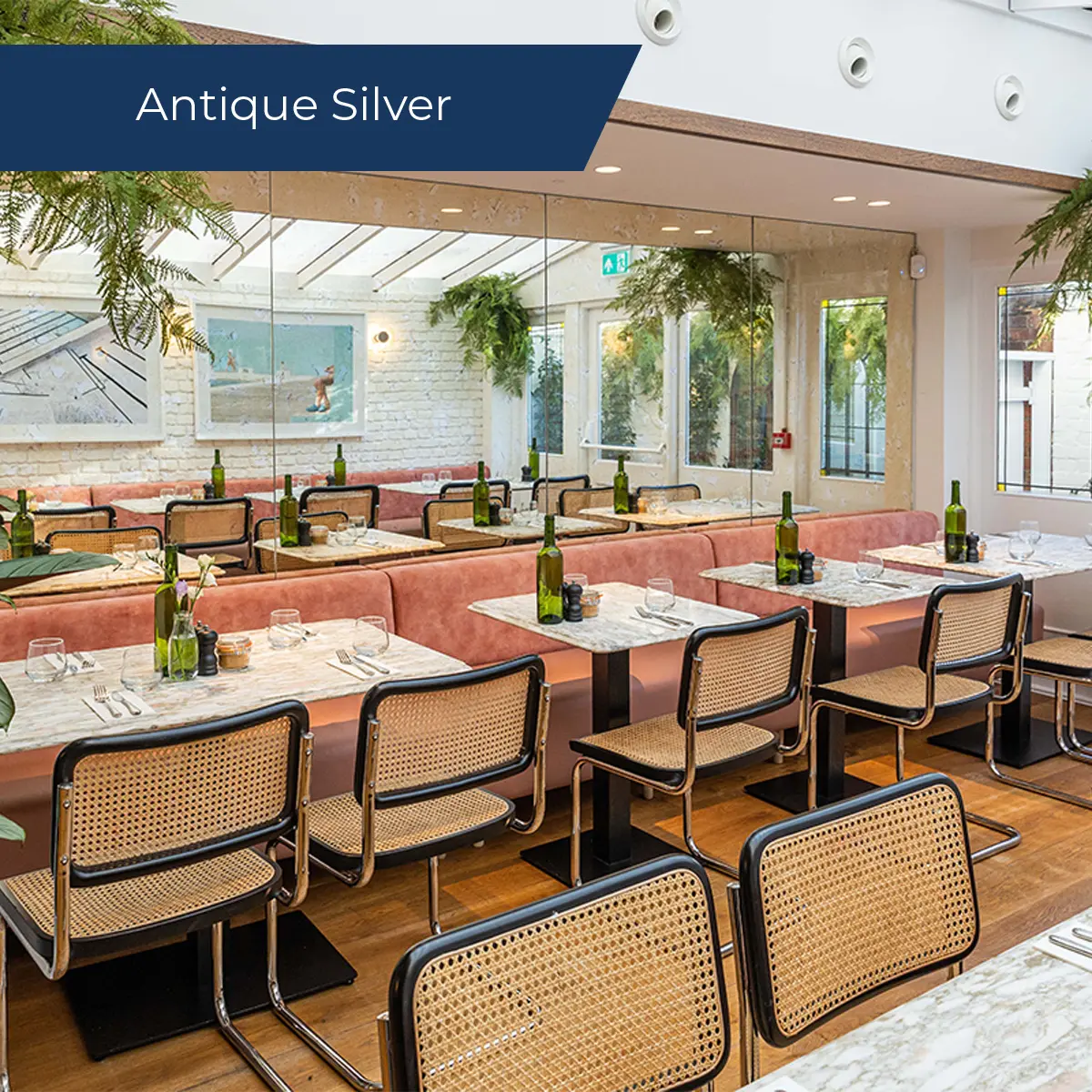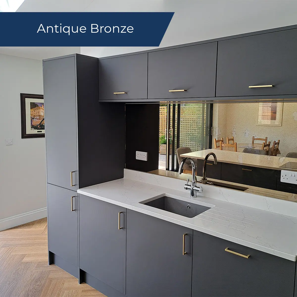 Available in silver, bronze, grey, silver antique, and antique bronze to suit your bathroom or kitchen colour scheme, or low iron glass for maximum clarity.