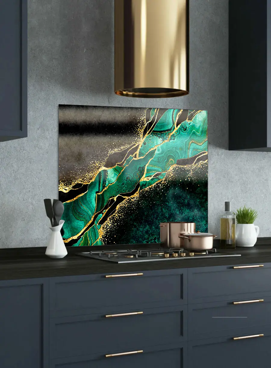 Emerald Marble Printed Glass Splashback