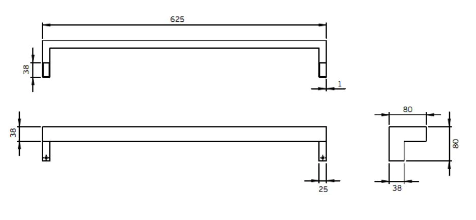 Stainless Steel Cranked Pull Handle (600mm Centres)